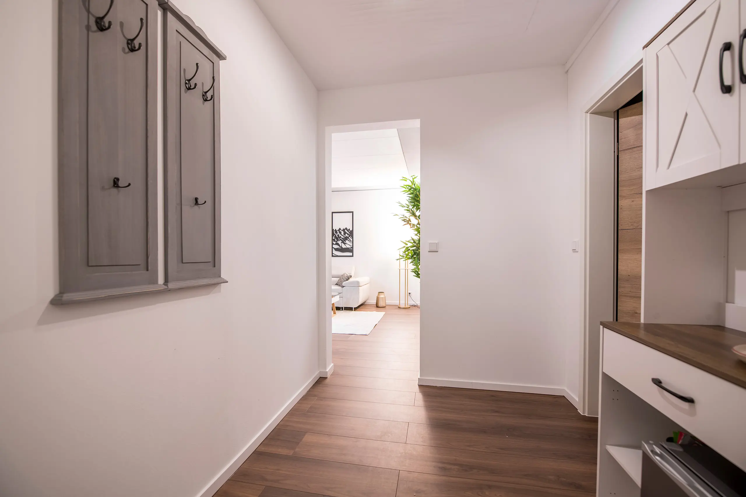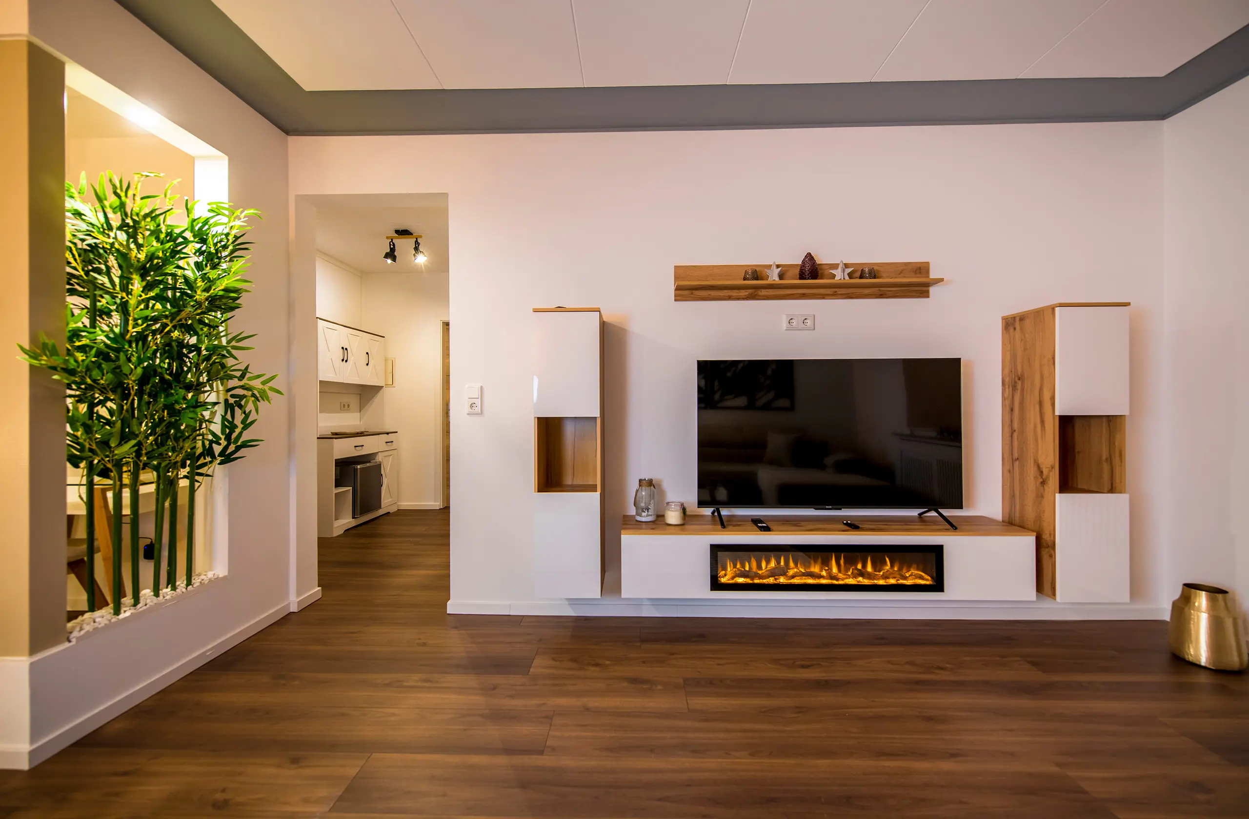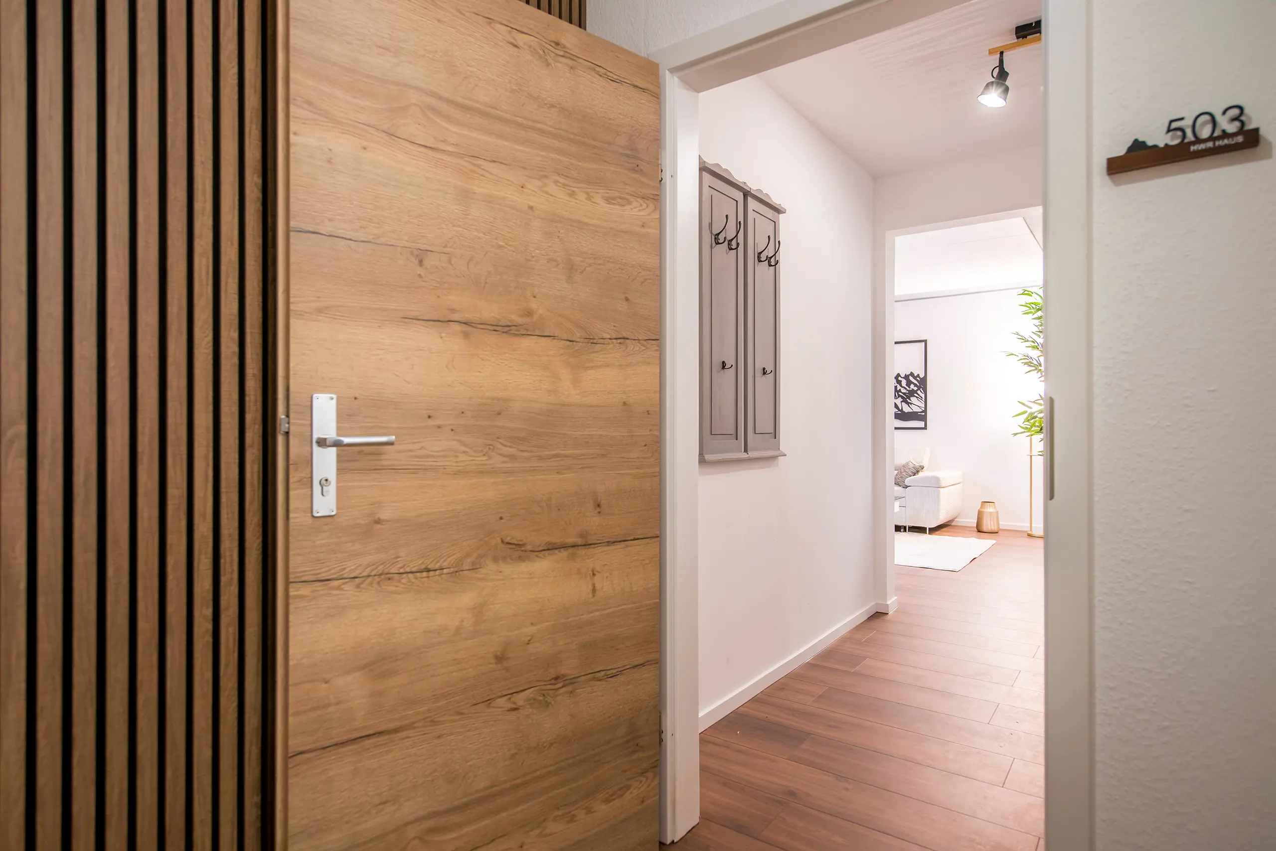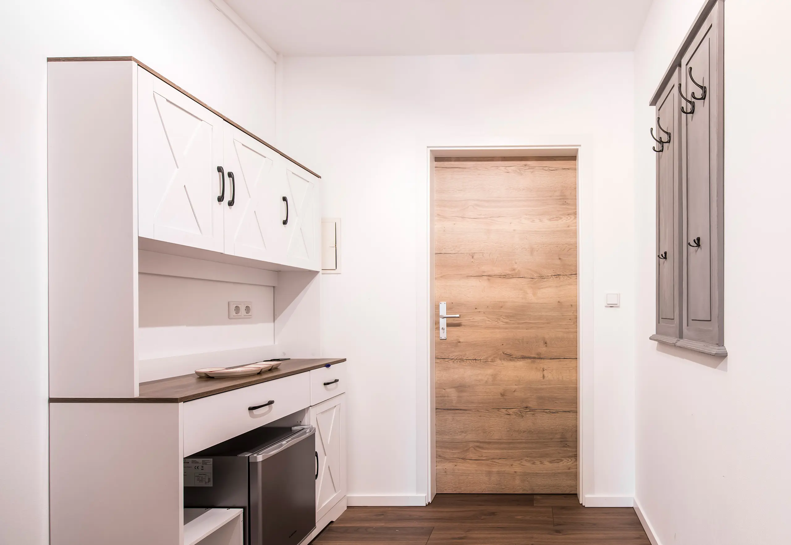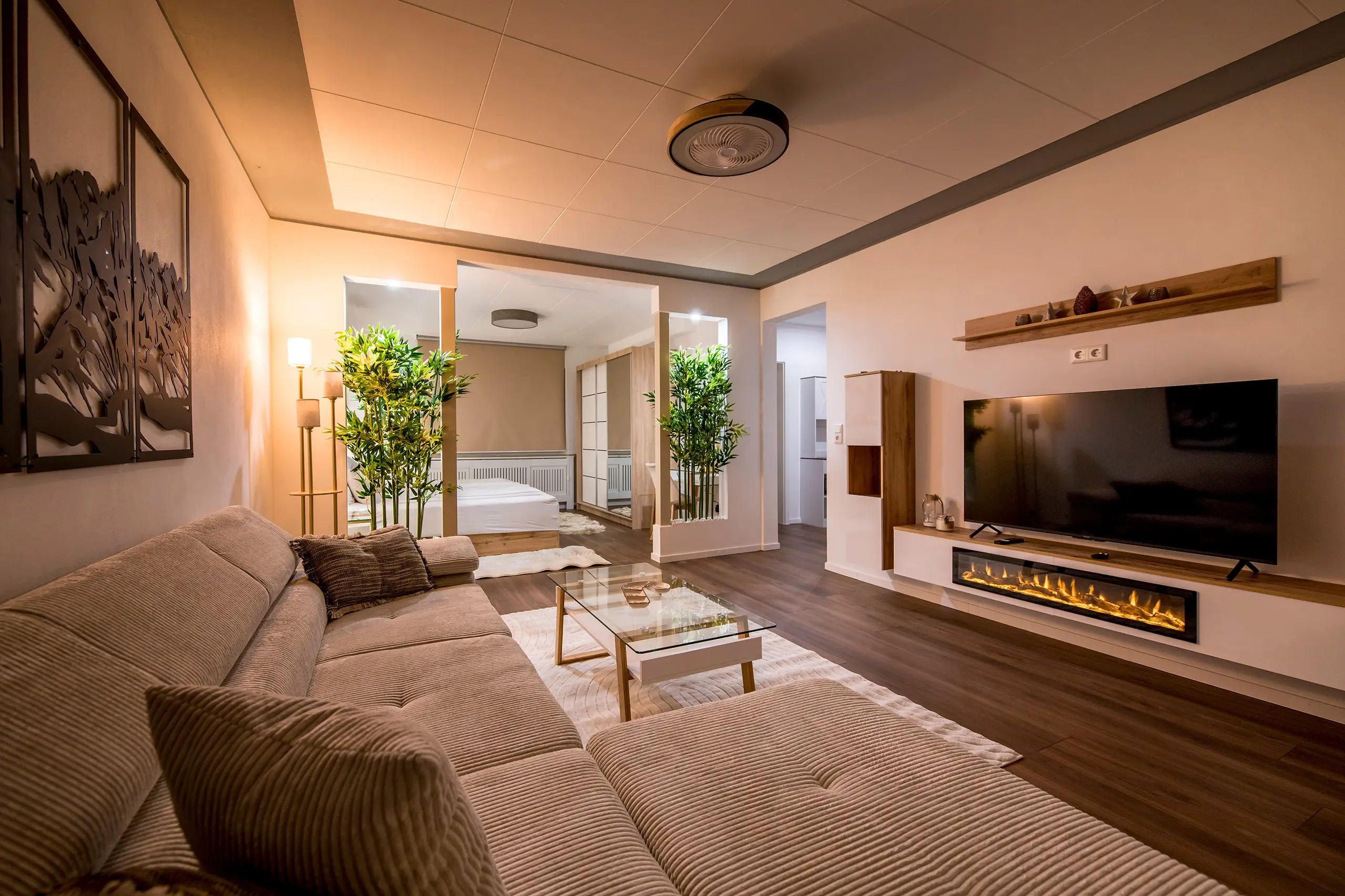 Located in a quiet position within “House 5” directly opposite the hotel, this 45 m² Junior Suite on the ground floor offers a stylish and cozy retreat. It is ideal for couples or small families of up to 3 people.