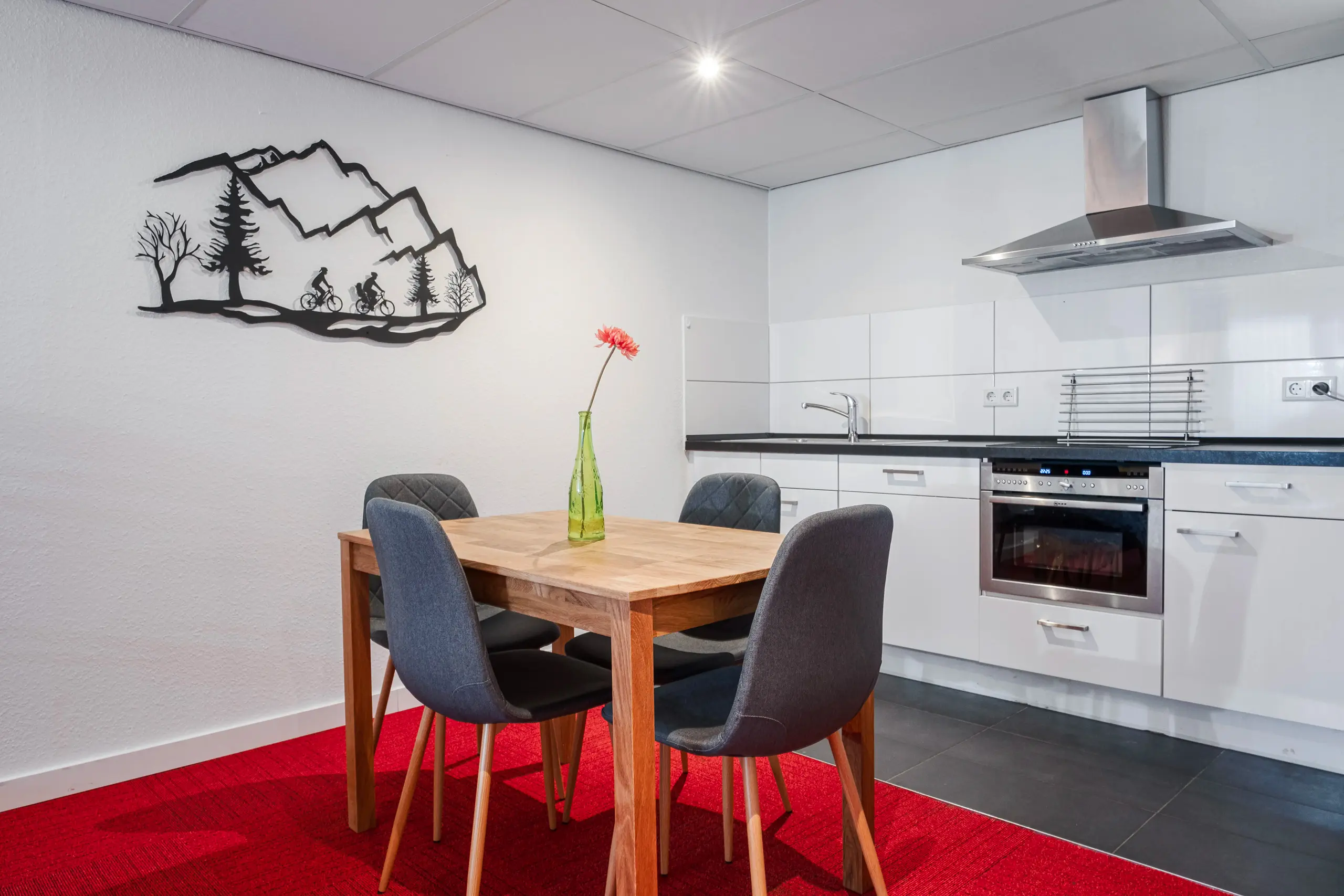 Diese Wohnung befindet sich gegenüber der Rezeption, im Nebengebäude immer ein paar Schritte außerhalb, aber im Erdgeschoss.